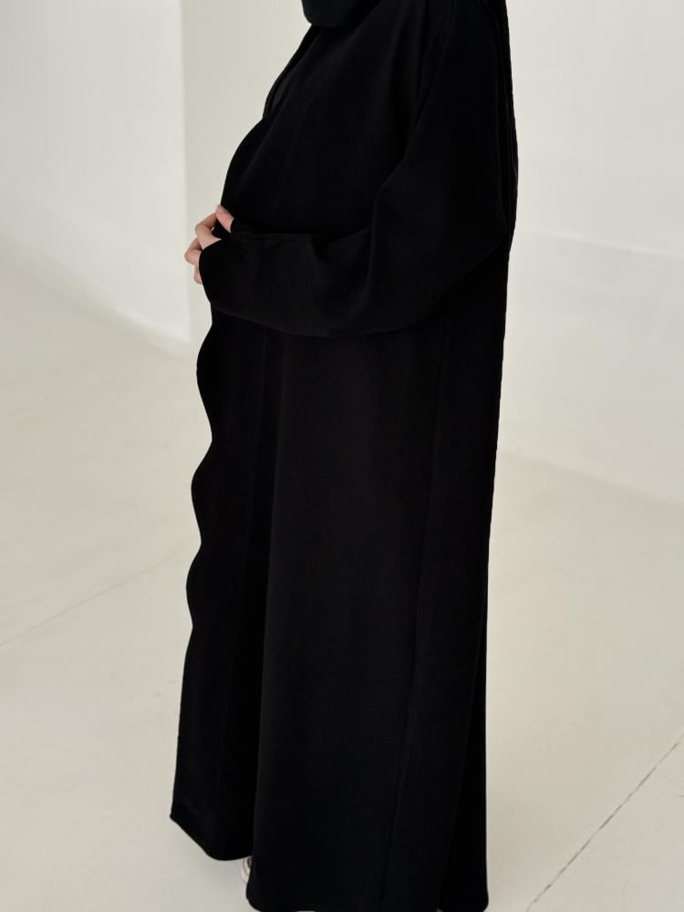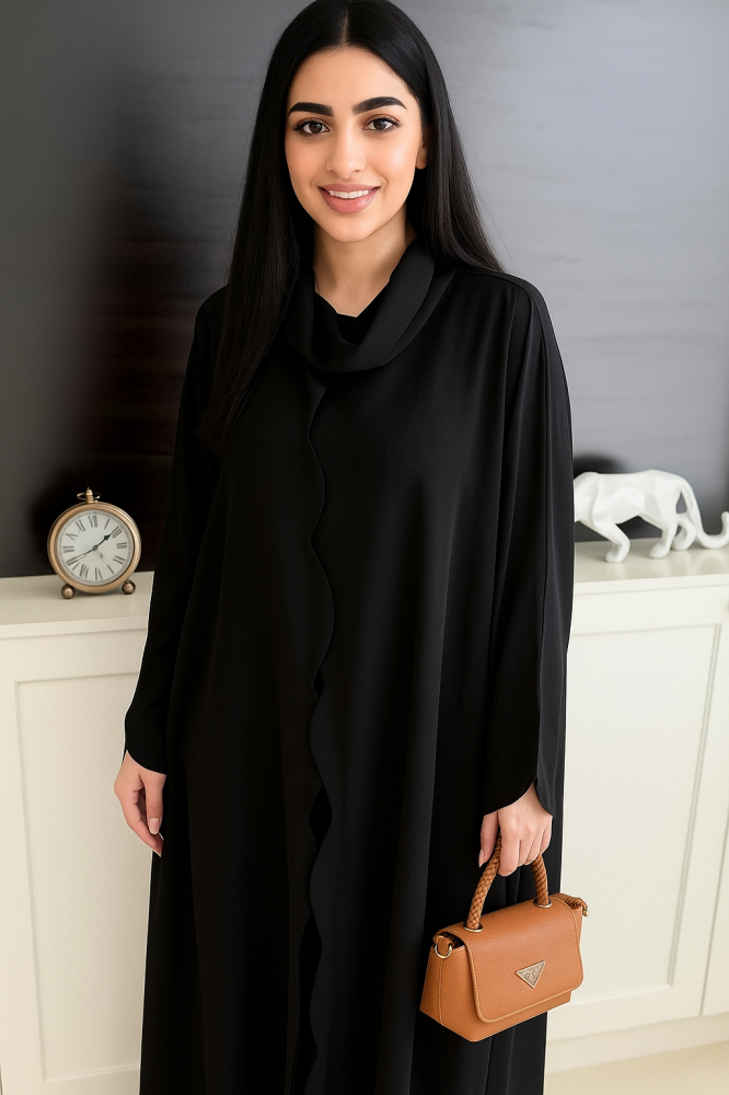 • العباية مفتوحة من الأمام بشكل مموج متدرج على طولها.